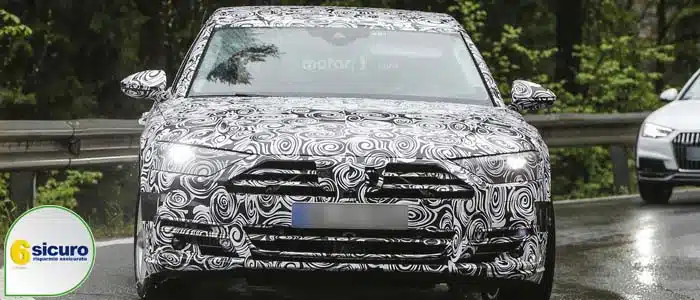 Dalle immagini del frontale si deducono fanali con un taglio diverso, più spigoloso e una calandra che lascia spazio al paraurti, senza dare quell’impatto “pesante” che le vetture dai quattro anelli mostrano oggi. Il cofano sembrerebbe piuttosto ampio a dispetto di una superficie vetrata del parabrezza che non pare poi così vasta, mentre il retro rimane classico.