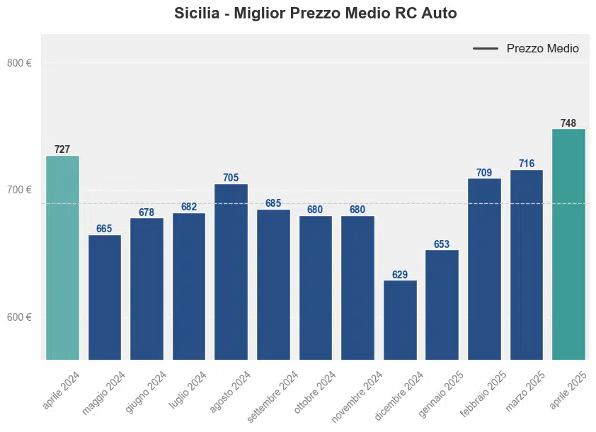Nel mese precedente, il miglior prezzo medio registrato in Sicilia era di 716,98€. Questo evidenzia un incremento significativo rispetto ai 748,51€ di aprile 2025. La tendenza al rialzo dei prezzi può influenzare le decisioni dei consumatori nella scelta della polizza più conveniente.