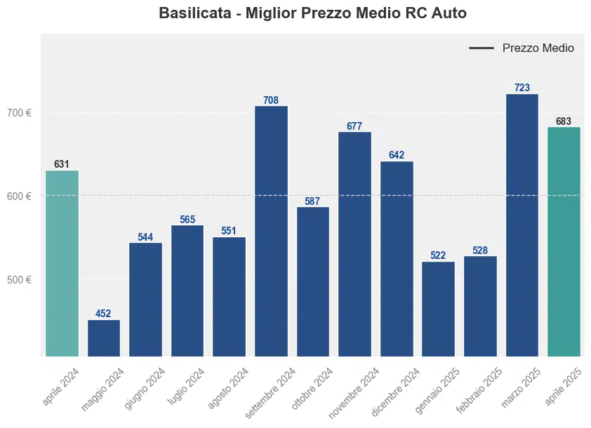 Prezzo medio assicurazione auto in Basilicata ad aprile 2025