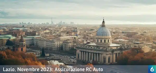 Secondo i dati dell’Osservatorio Assicurazioni di 6Sicuro, a Novembre 2023 il premio RC auto più basso calcolato per la regione Lazio è stato di 138,67€, precisamente a Roma. Questo dato è stato ottenuto considerando la totalità dei preventivi confrontati dagli utenti del comparatore assicurazione auto.