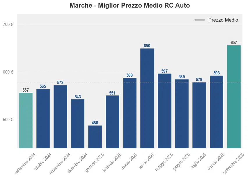Miglior prezzo RC auto nelle Marche ultimi 12 mesi, Settembre 2025
