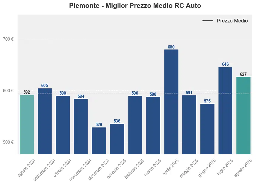 Miglior prezzo RC auto in Piemonte ultimi 12 mesi, Agosto 2025