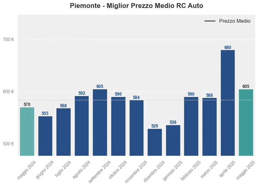 Prezzo medio RC auto in Piemonte a maggio 2025
