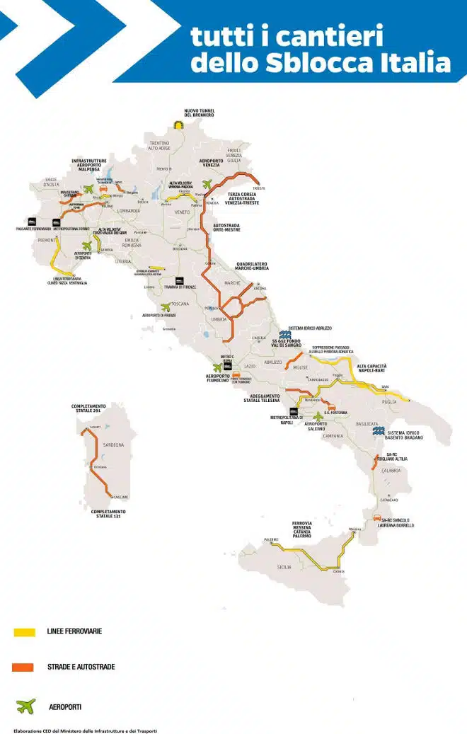 Vuoi un assaggio? Ecco l’elenco di tutte le opere e dei cantieri dello Sblocca Italia.